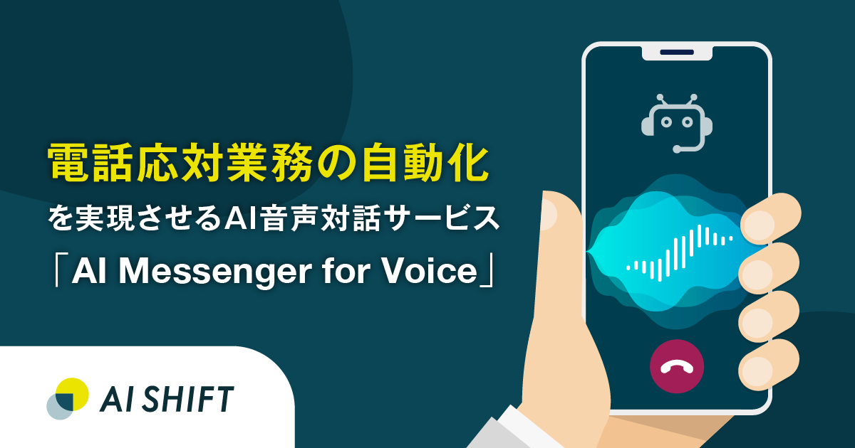 株式会社サイバーエージェント(本社:東京都渋谷区、代表取締役社長:藤田晋、東証一部上場:証券コード4751)の連結子会社である株式会社AI Shift(本社:東京都渋谷区、代表取締役社長:米山結人、以下AI Shift)は、電話応対業務の自動化を実現させるAI音声対話サービス「AI Messenger for Voice」の提供を開始したことをお知らせいたします。