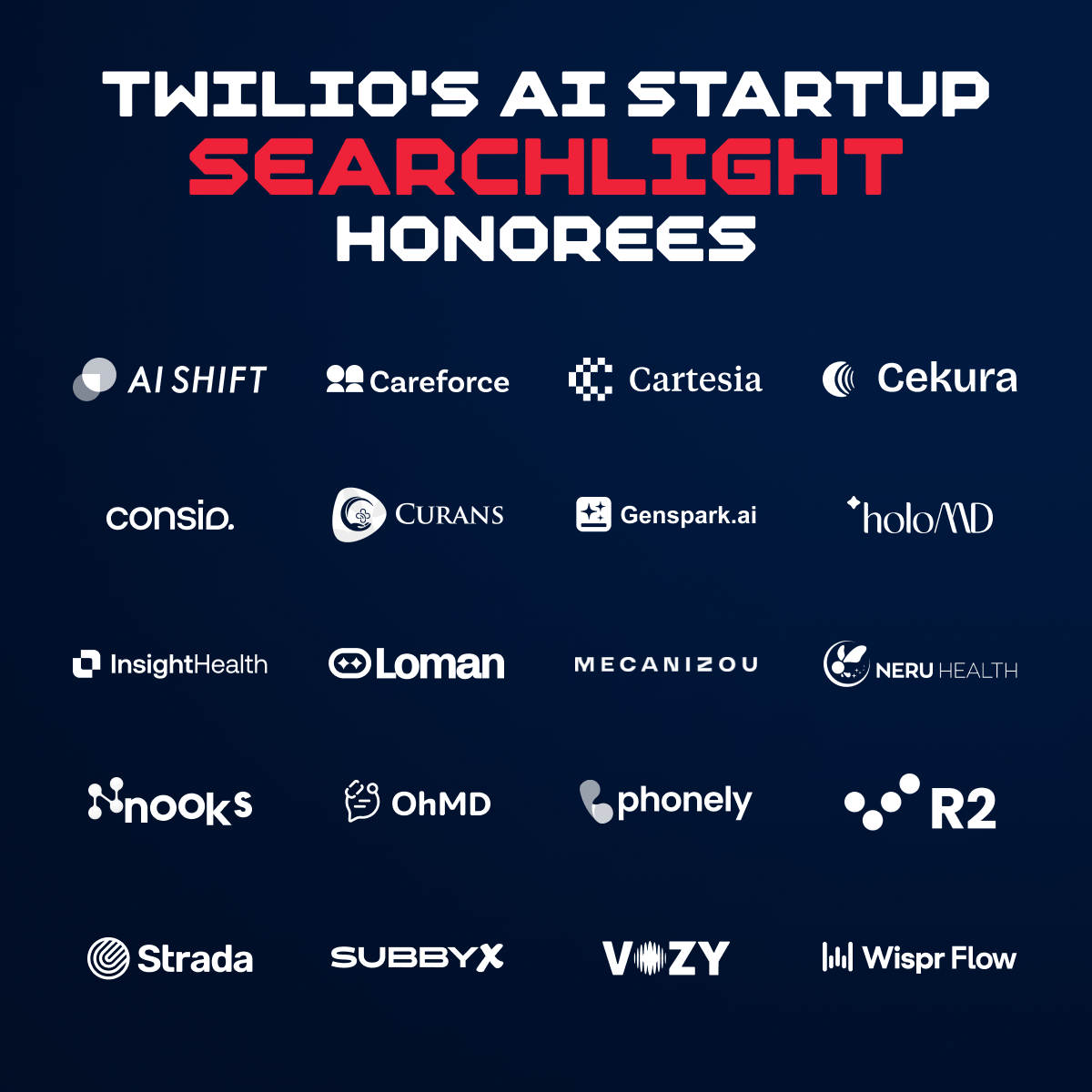 Twilio(NYSE: TWLO)が主催する、世界中のAIスタートアップからTwilioプラットフォームを活用し、優れた顧客体験の革新を実現した企業を選出するグローバルアワードです。2025年度は過去最多となる750社超の応募があり、AI Shiftを含む20社が最優秀AIスタートアップとして選ばれました。受賞企業は、カスタマーサポート・Eコマース・金融・医療・保険など多岐にわたる分野に及びます。審査は、Twilio・Andreessen Horowitz・OpenAI・IDCの代表者により行われました。