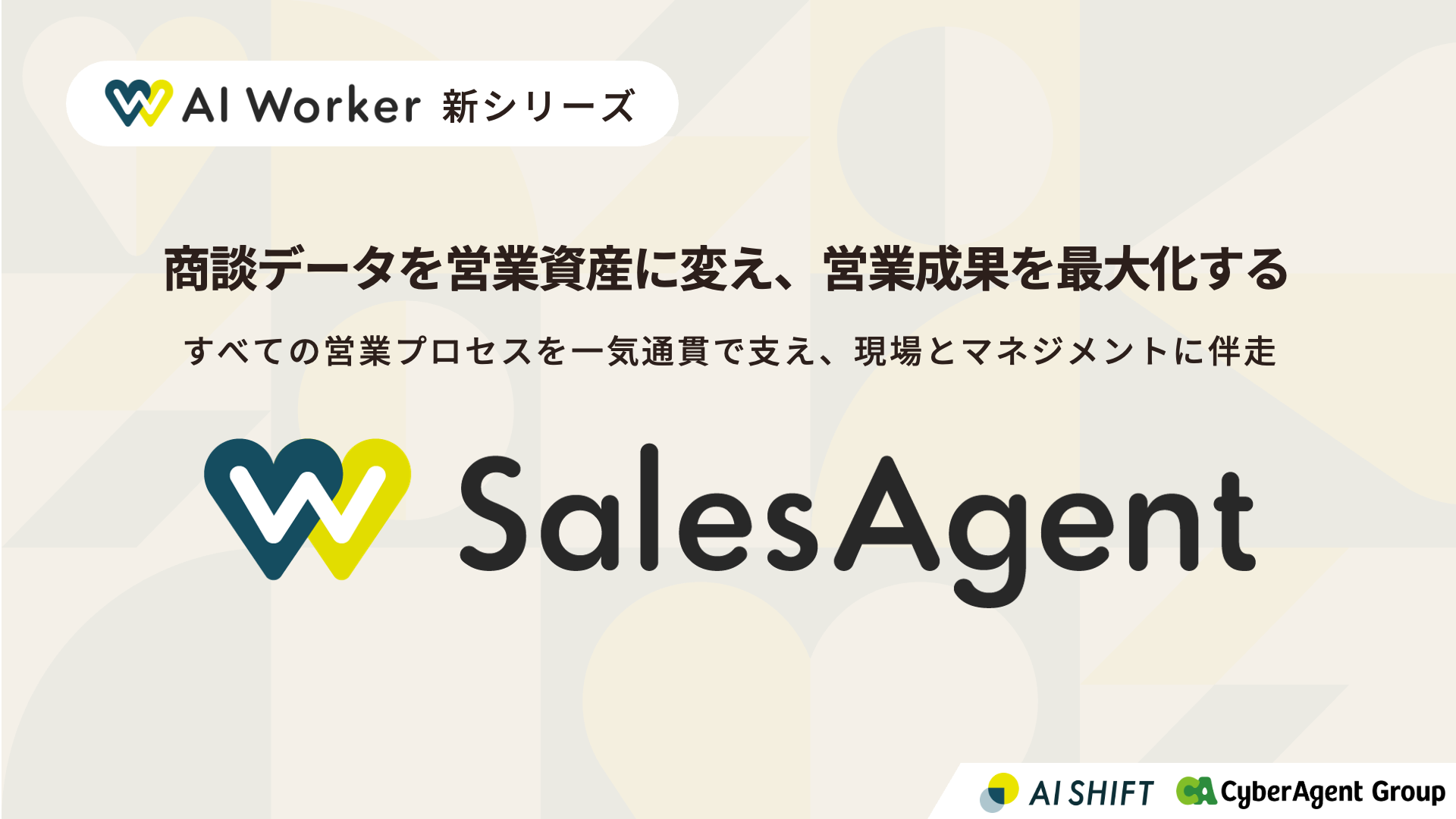 株式会社AI Shift(本社:東京都渋谷区、代表取締役社長:米山 結人)は、AI Workerシリーズの新プロダクトとして、すべての営業プロセスを支援するAIエージェント「AI Worker SalesAgent」 を発表いたします。