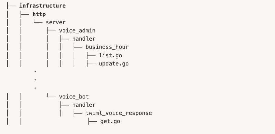 infrastructureの中にhttp(handler)を含めた理由は、http(handler)も外界との接続を担当するという意味でmysqlやredisなどと同じような性質を持っているからです。