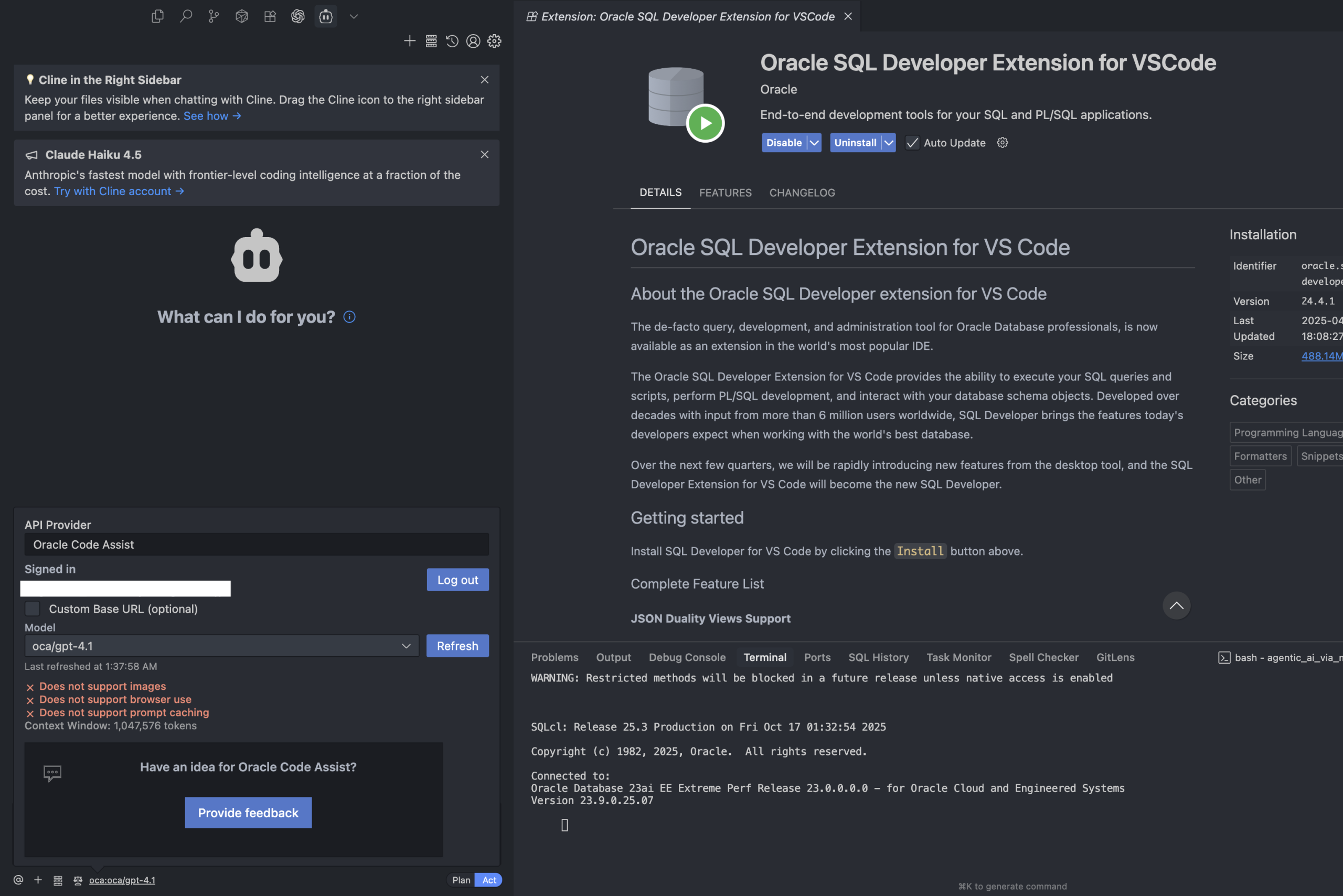 OCI における Java・SuiteScript・PL/SQLなどに最適化されているため、OCI 上での開発には有用なツールになります。Cline を通して利用することができます。