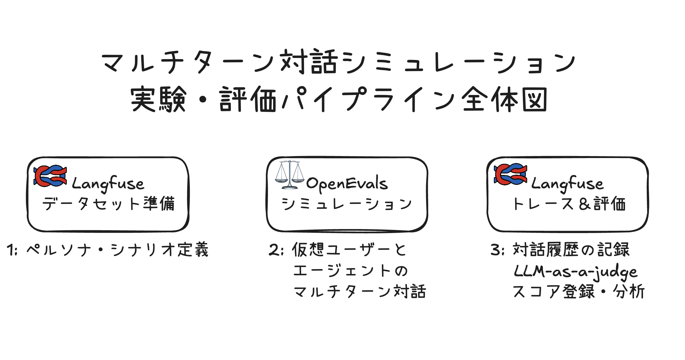 本記事では、OpenEvalsを使ったマルチターン対話のシミュレーションと、Langfuseによる実験管理・評価の実践方法を紹介します。